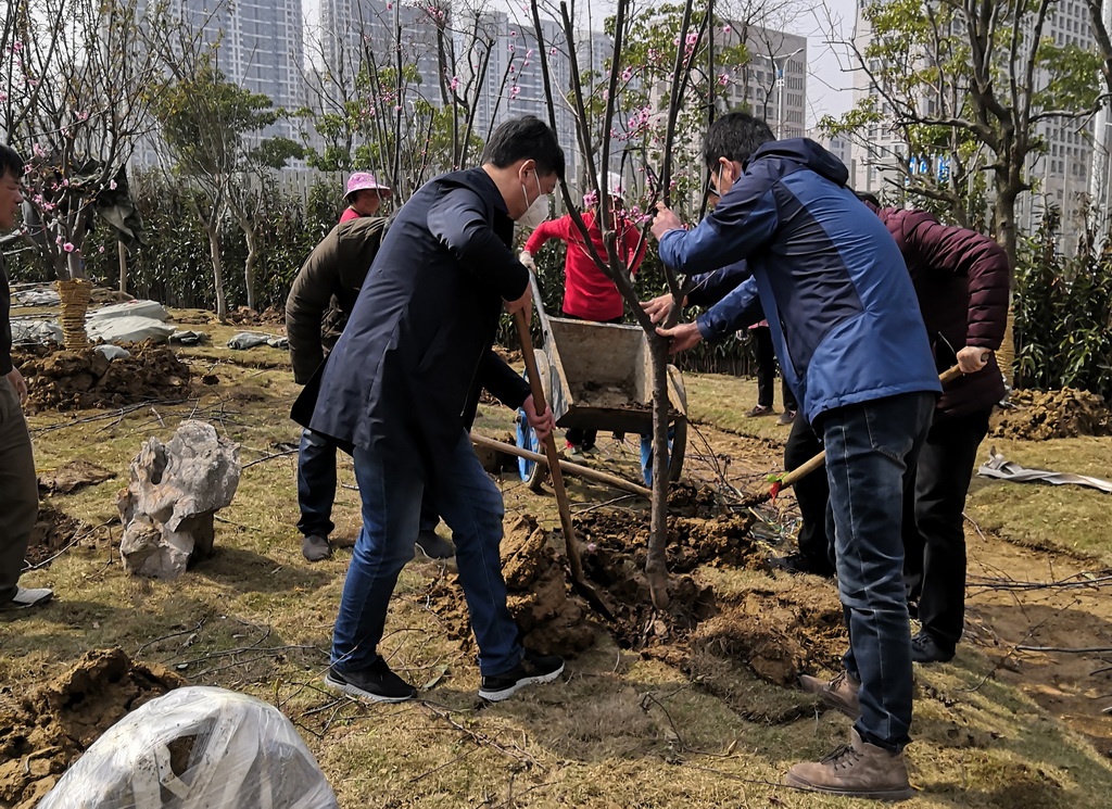 鑒于目前尚處于疫情防控階段,大家戴上口罩、手套,在做好自身安全防護(hù)工作的同時(shí),一起來(lái)到新搬遷的集團(tuán)公司綠化帶的空地上,他們有的揮鍬鏟土,有的扶苗填坑,干得勁頭十足、熱火朝天,大家分工協(xié)作,認(rèn)真地完成著每一道工序,精心地栽下每一棵樹苗。經(jīng)過(guò)大家一上午的辛勤勞動(dòng),集團(tuán)公司的綠化環(huán)境得到了很大的改善。